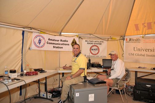 Satterfield said that the problem with the Vsat system was stability and reliability: "UoM Vice President for Facilities and Operations Ron Bogue was the Director in Charge of the Haiti operations. His concern about the unreliable communications caused him to contact Julio Ripoll, WD4R, with whom he has worked for years as the architect for UoM Medical facilities. Ron knew that Julio is a ham radio operator and very involved with the National Hurricane Center in Miami and its Amateur Radio station, WX4NHC."