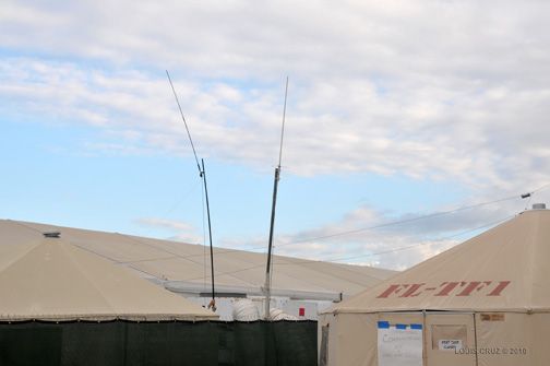 According to Jack Satterfield, W4GRJ/AFA4DG, Medishare has constructed several health clinics in Haiti over the years -- all of which were destroyed in the earthquake. "Medishare was able to rapidly deploy medical teams and assets to begin the overwhelming task facing the post earthquake medical needs," he told the ARRL. "A field hospital was established within the relatively secure boundaries of the airport in Port-au-Prince. Large tents were supplied to set up make shift operating rooms, patient treatment and recovery areas and mass sleeping quarters for the volunteers. The overall conditions were basic to primitive; however, the medical care being provided was extremely high considering the overall conditions. We needed to establish sustainable logistics for supplies from cots, food, water, medical equipment and pharmaceuticals to handling the more than 100 volunteers who were rotating in and out every 5-7 days. Establishing reliable local and international communications was a high priority. UM, through its internal IT group, set up two broadband Vsat satellite links to handle e-mail and two channels of voice Voice over Internet Protocol (VoIP) phone circuits."
