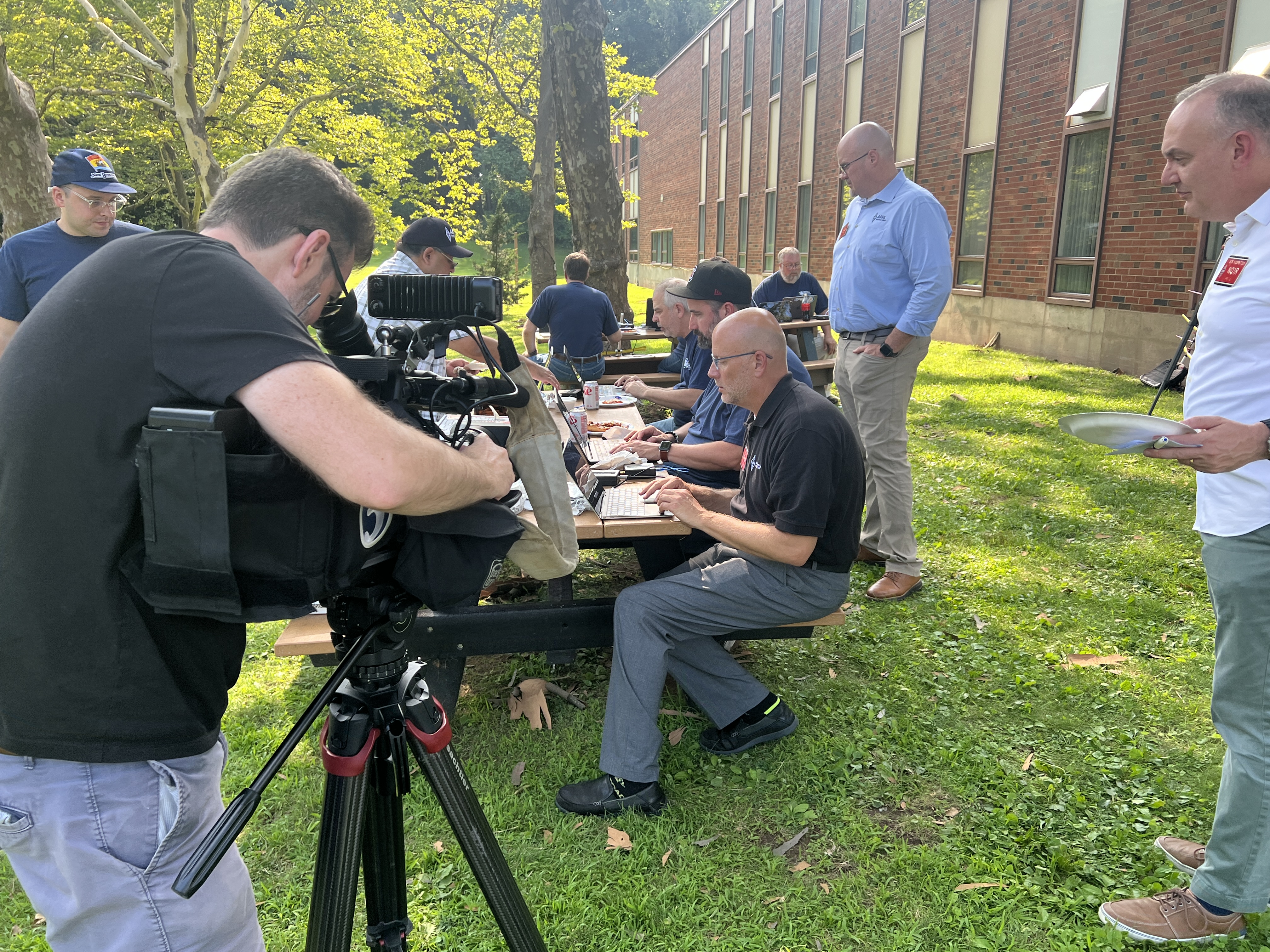 The teachers thought it was cool. "Amateur radio is so important to the future of engineering and STEM in our country," said Kristen Kucko, KQ4ECP, one of the institute participants. The group gathered outside ARRL Headquarters with antennas they had made earlier in the day. As the pass happened, the educators tracked the ISS by hand. A warble of SSTV transmission filled the air, and the group was excited. After the pass, they used laptops to decode the audio stream into an image, while they sat on picnic tables and enjoyed pizza and wings.