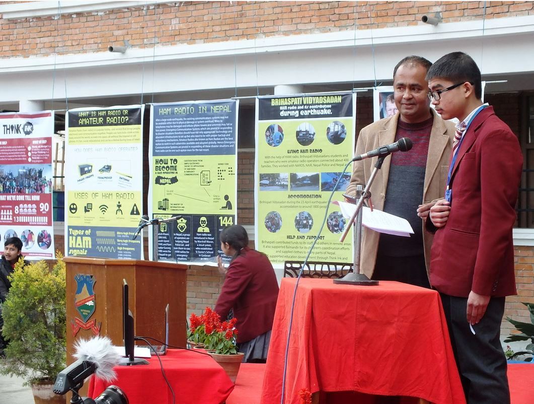 Leading up to the event, the school had organized a week-long program and exhibition related to space travel and technology, including Amateur Radio.The Nepal Amateur Radio Operators’ Society supported the exhibition. The school is home to the Free and Open Source Research Lab and Ham facility. During the Nepal earthquake hams from Nepal and India used a building at the school as they attempted to coordinate efforts to search for missing people and reunite them with their families.