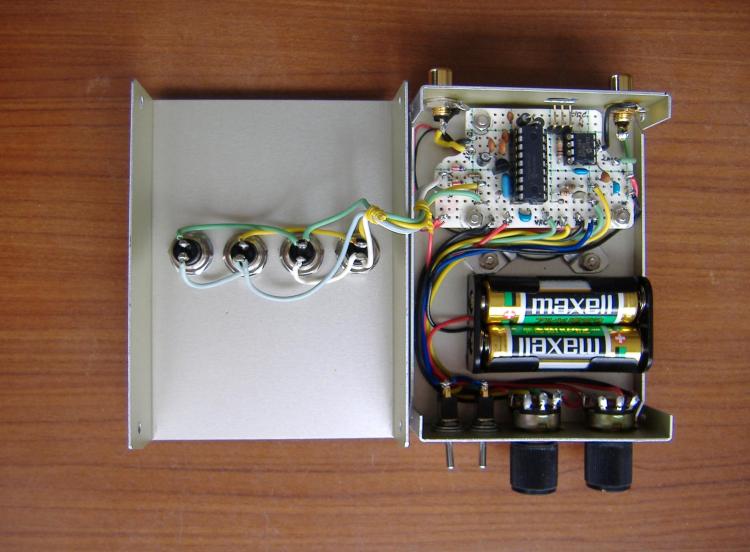 Connect the batteries and plug in your paddle. The paddle may be either the single or double lever type. But of course, iambic mode will not really work with a single lever paddle. Turn S1 and S2 on and set R9 (SPD) and R8 (MON) at the center position.
