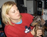 Besides holding her dachshund, she also holds a technician class Amateur Radio license and is going for the general.